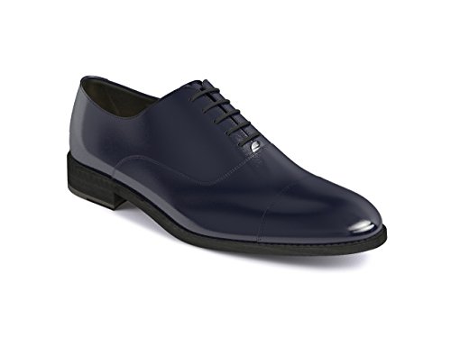 Your own customized luxury navy calf leather men oxford toe cap shoes, 100% handmade in Italy Style: oxford toe cap , confortable fitting Laces: black Eyelets: none Lining: black , silver stamp Sole: "if you want" leather plan welt Edge: black Leathers: shiny - lucido